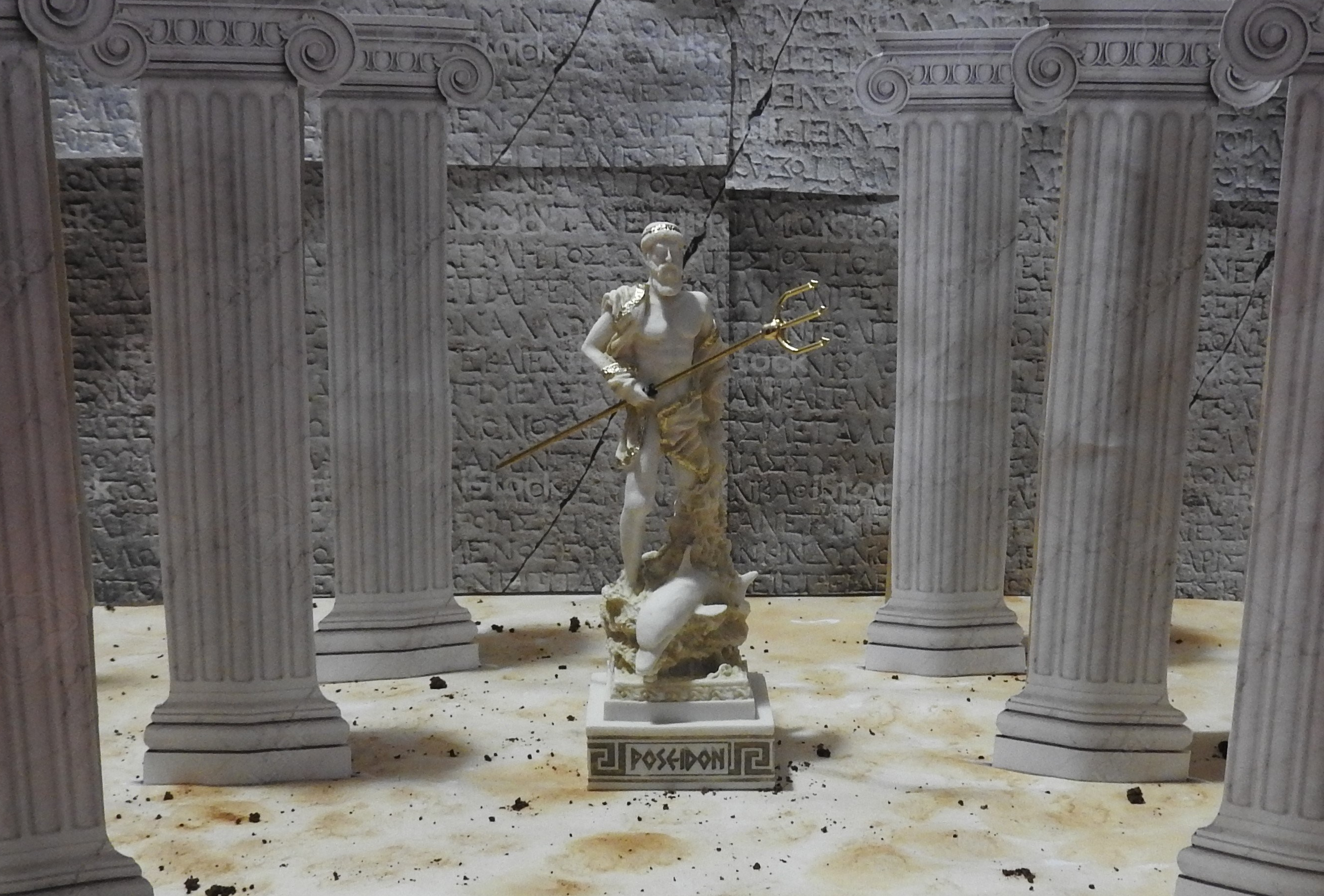 King of the Seas, Poseidon was ruler of the sea and land, he was the creator of horses and the husband to the sea nymph, Amphitrite, with whom he had many sons including, Triton. Of course being an Olympian God he was not faithful to his wife and had many children with other women, including Proteus, who when captured and held fast would give forth his oracles. Poseidon also competed against Athena for the patronage of Athens, they decided to let the people decide after both producing a gift to the people. Poseidon created a spring in the city, which excited the Athenians but when they tried to drink from it, the realised it was salt water and not viable for drinking. Athena grew an olive tree in the middle of the city which the Athenians found many uses for such as making oils and using the wood for building material. Poseidon, realising that he was going to lose, withdrew from the competition and stated that his niece had bested him this day. Along with Apollo, Poseidon was responsible for building the walls of Troy, but when he was denied his payment afterwards, he turned on them and sent sea monsters to wreak havoc on the city. He sided against the Trojans in the Trojan war. Poseidon was often seen riding the waves in his chariot, lead by seahorses, holding aloft his trusty trident which he always carried with him.